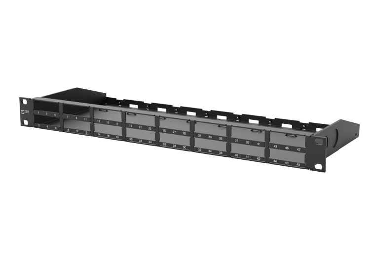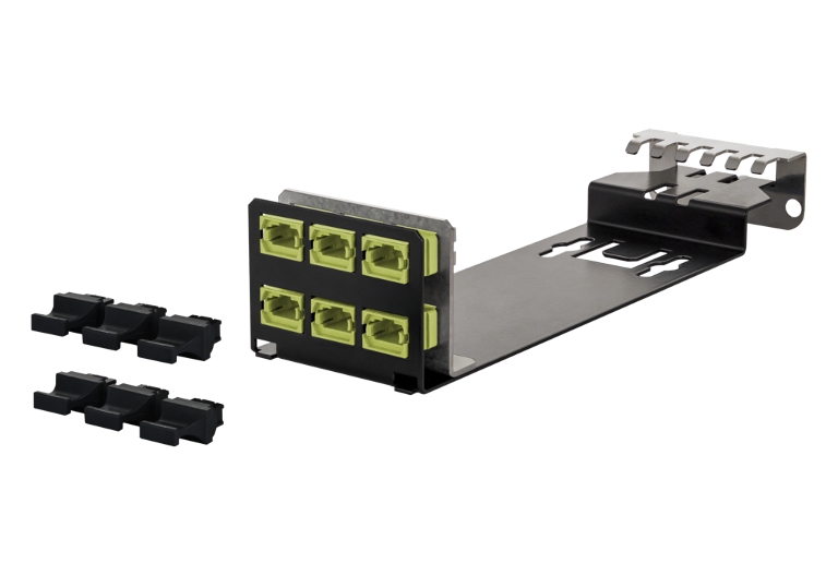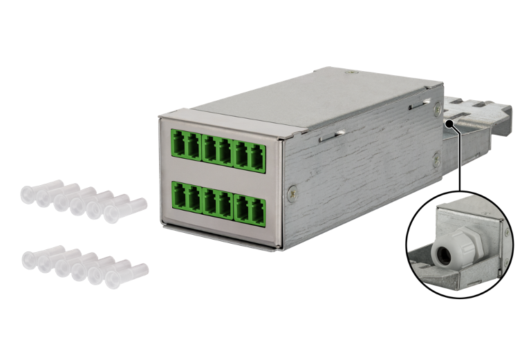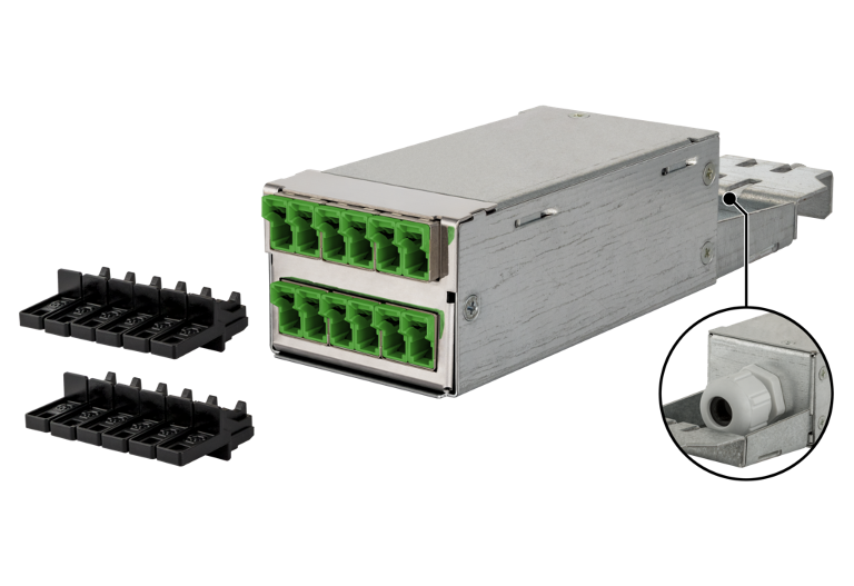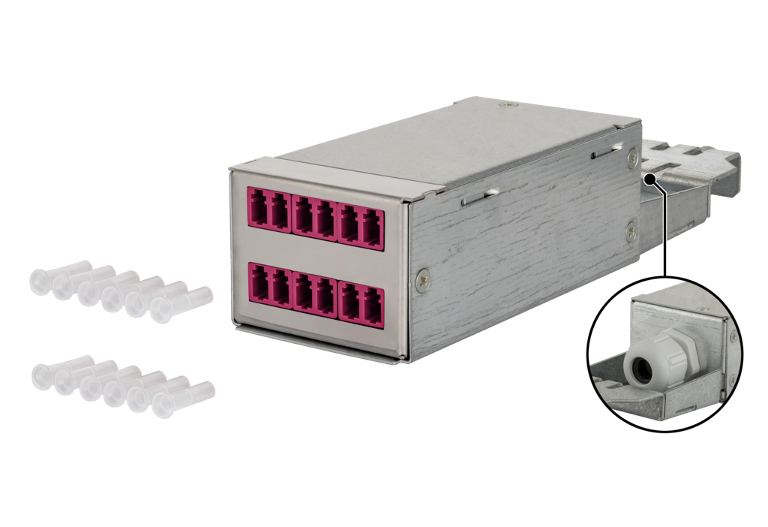 La gamme de produits DCCS (Data Center Compact Solution) a été spécialement développée pour les centres de données et leurs besoins et a été largement adaptée aux exigences des clients dans ce domaine. Le système DCCS est basé sur un rack 19 pouces avec 1 unité de hauteur, dans lequel les liaisons cuivre et fibre optique pré-assemblées (assemblages connectés avec des câbles) peuvent être facilement installées de manière modulaire. Divers assemblages supplémentaires sont également disponibles. Jusqu'à 48 connexions MPO / MTP cuivre ou 48 fibre optique duplex ou fibre optique ainsi que des combinaisons des deux technologies de transmission peuvent être hébergées sur une seule unité de hauteur.