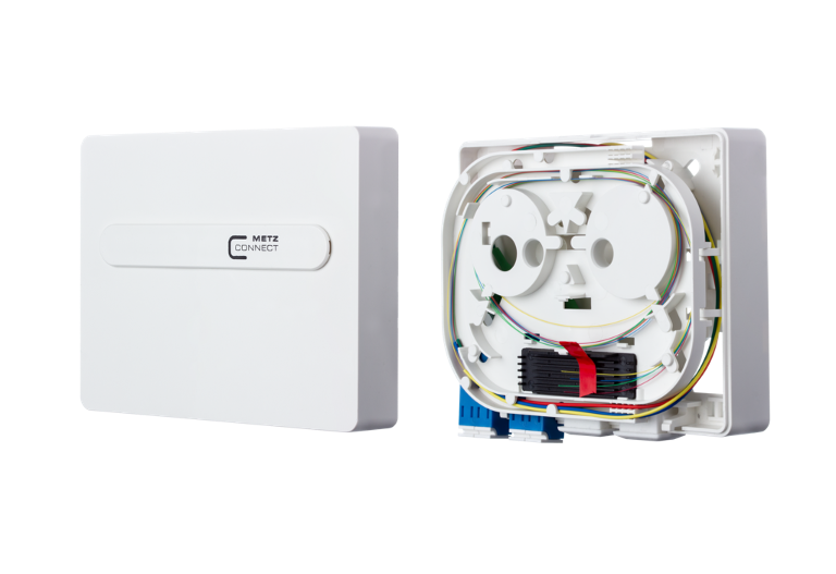 Als Teilnehmeranschlüsse für die Netzwerkverkabelung Glasfaserkabel bietet METZ CONNECT LWL Anschlussdosen in kompakter Bauform.